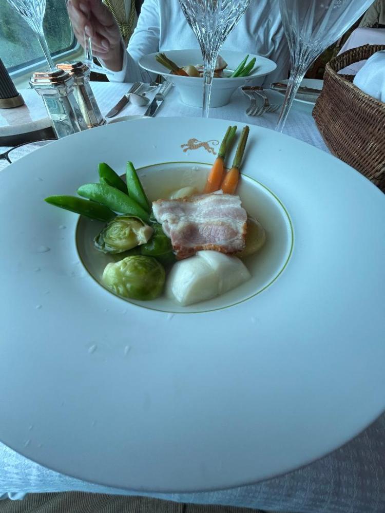 Initial impression is sensory and culinary overload and no onboard murder quite yet although I did stop by for a glass of Veuve in the bar car after dinner and the karaoke blaring accompanied by off key voices was murderous on the ears.