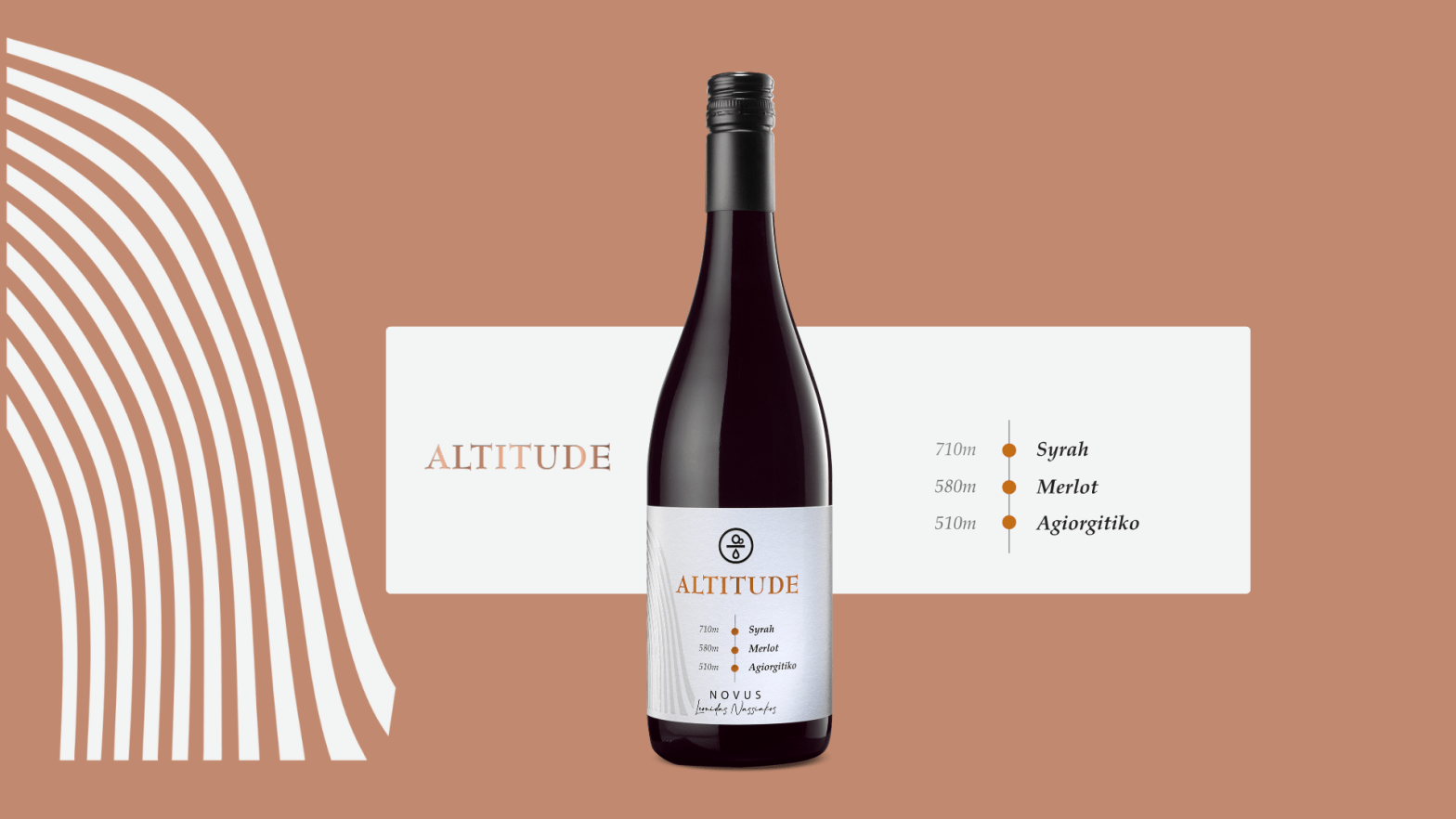(Novus 2023 Altitude Red, PGI Peloponnese, Novus Winery, Tripoli, Greece, 750 mL, 13.5%).