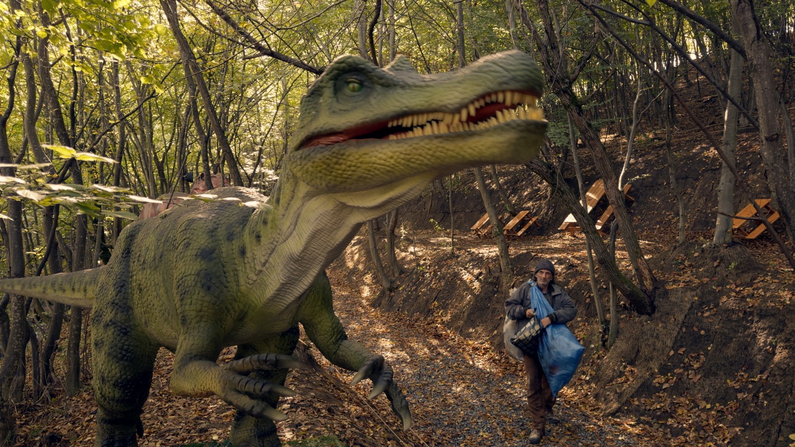 With all the social, political and economic commentary and the two scenes shot at a dinosaur walking trail is Jude going so far as to say humanity is heading towards moral extinction that neither a chequebook or guilt can prevent.